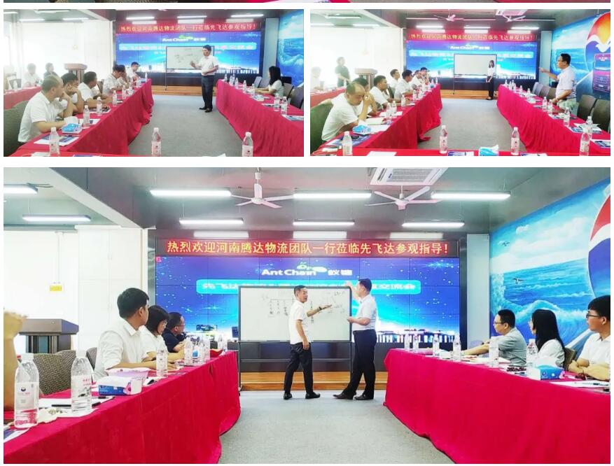 一出機(jī)場(chǎng),我們就感受到來(lái)自兄弟單位的熱情,作為東道主的蟻鏈先飛達(dá)物流派專車將我們接到蟻鏈先飛達(dá)物流的總部,董事長(zhǎng)黃結(jié)業(yè)先生及夫人楊燕妮女士在會(huì)議室熱情的接待了騰達(dá)物流的學(xué)習(xí)團(tuán)隊(duì),跟大家進(jìn)行了親切友好的交流,囑咐先飛達(dá)各部門負(fù)責(zé)人要知無(wú)不言、言無(wú)不盡的進(jìn)行溝通和探討,并預(yù)祝大家在接下來(lái)的學(xué)習(xí)交流中有所收獲。